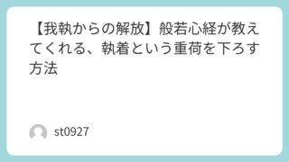仏教 【我執からの解放】般若心経が教えてくれる、執着という重荷を下ろす方法 どうもさとやんです。前回に引き続き、般若心経に関連する記事です。最近GoogleGeminiと仏教の談話をするのですが、「私の心は私のものではないと感じることができた時、つまり心が私のコントロール下にないことを知る時、つまらないことに悩んで... 2025.11.30 仏教